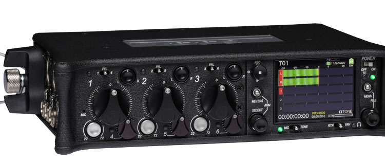 The Sound Devices 633 is a compact, six-input mixer with integrated 10-track recorder featuring PowerSafe technology.
