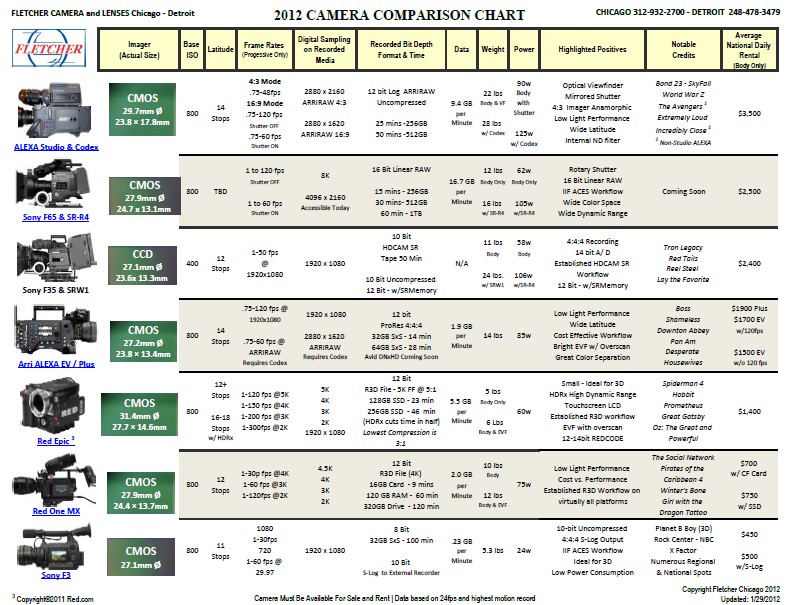 Download the Fletcher 2012 camera comparison chart PDF.