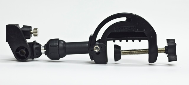 The C-Clamp camera mount is adjustable in three places and uses a ¼ inch thread for easy mounting on most cameras on the market. The bottom of the mount is adjustable 90 degrees to enable you to mount it right side up, upside down or side ways. The top of the mount (extender bar) will raise by about 2 ½ inches and can rotate 360 degrees. The camera seat will adjust 180 degrees.