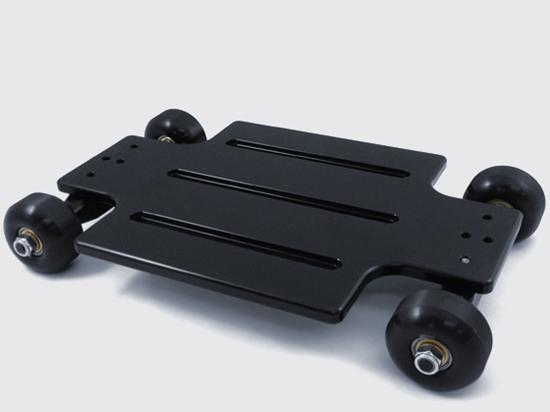 The $160 8 inch wide Action Cart table top dolly has a sturdy, airplane grade aluminum chassis that supports two adjustable axles. The added width of the cart allows for optimal stability. Their orientation can be modified to allow for adjustment of the cart’s movement. The Action Cart can move straight, along broad curves, or in complete circles for 360° shots.