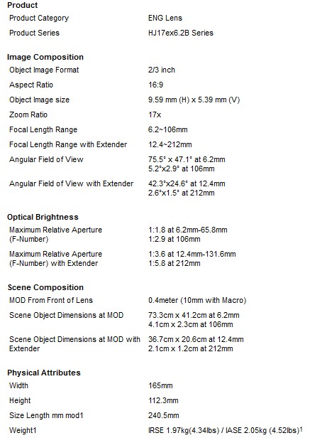The new Canon HJ17ex6.2B lens’s MOD (Minimum Object Distance) is shorter by 0.16 when compared to the HJ17ex7.6B. This gives the operator more flexibility when capturing a closer image is required. It’s a great performer in close-up interview situations or in closer object shooting.