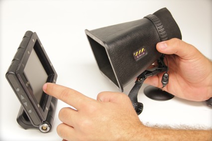 The GRID 5.0 allows shooters to transform the RED Pro Touch 5.0 monitor into a large high definition EVF without affecting any of the original functions, such as touch screen function, and normal video monitor use. The GRID 5.0 attaches to the RED Touch 5.0 monitor via a frame and magnetic points.