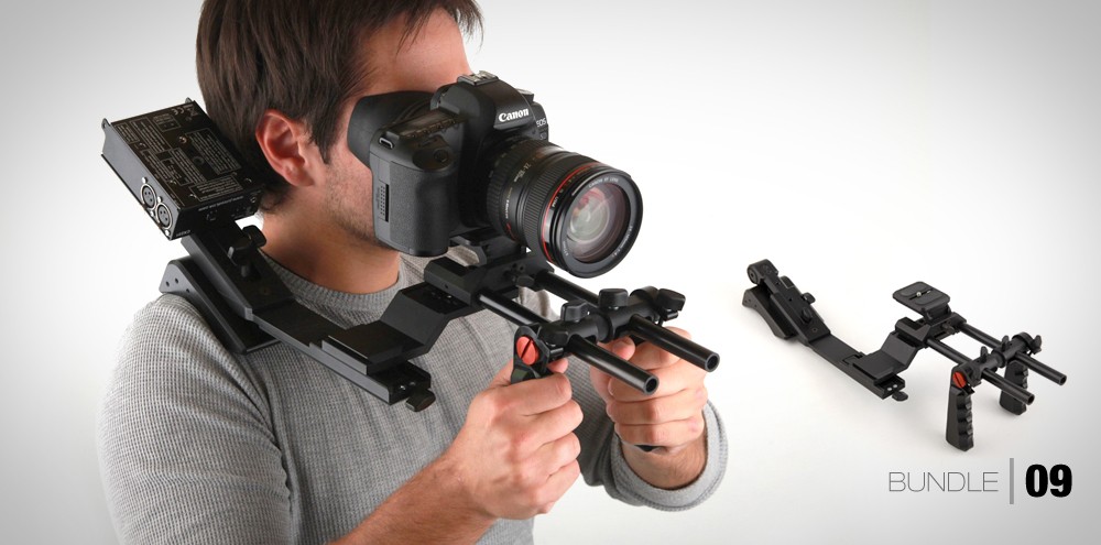 The guys have bundles for shooters who use small and mid sized cameras including DSLR’s who want to shoot in various positions including on the shoulder and low angle shots. Handy FILMTOOLS even have a Base.X rig for small 3D camera shooters.