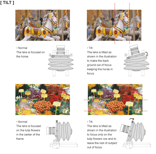 The HORSEMAN TS-Pro is designed to allow using tilt/shift techniques with conventional taking lenses. It supports various lenses for 35mm DSLRs, medium format cameras and M39 mount. When it is used in combination with a still camera lens with a large image circle, it enables the cameraman to utilize tilt/shift techniques with sufficient margins for imaging creativity that was never before possible in video application. *Lenses used for tilt/shift movements must have image circles covering cameras’ image sensor sizes.
