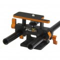 Compatible with DSLRs like the Canon 5DMK2, 7D, 60D, T2i Nikon D90, and D7000. It screws to the camera using a 1/4-20 threaded screw and it attaches to industry standard 15mm rods by tightening one knob. The advantage of this product over our regular “DSLR stand ” is that you don’t have to remove other equipment that is in front or back in the rod system to install this piece, as you do not need to slide it on the rod but rather clamp it. The Quick Release DSLR Stand is made of light but strong aluminum and anodized black and orange.