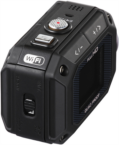 The new JVC GC-XA1 ADIXXION POV camera is pocket-sized and weighs barely a quarter pound. The JVC GC-XA1 ADIXXION camera is waterproof to a depth of five meters (16.4 feet), shockproof to withstand a fall from two meters (6.5 feet), dustproof and freeze-proof, all without the need for a separate housing. In addition, ADIXXION includes built-in Wi-Fi, 1.5-inch LCD monitor, image stabilizer and offers full HD 1920×1080 30p and 1280×720 60p recording.