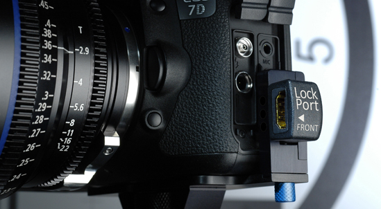 On the back of the great sales success of LockPort5 for Canon 5D MKII cameras, comes the release of the LockPort7 for 7D cameras. The LockPort7 is a new product developed to help avoid damaging your Canon 7D camera port. The mini HDMI camera port is very “expensive to repair” if damaged! The LockPort7 protects definitely the fragile output on your camera from tough production abuse with a rock solid clamp