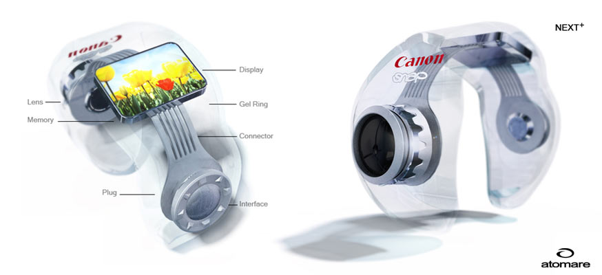 The Canon Snap due to its small size and ring form, this miniature snapshot camera can be always with you. Against the trend of putting more and more functions into electronic devices, the idea for this camera was to make it as simple and easy to use as possible.The most important point for a snapshot camera is of course that you have it active the right moment. Therefore the whole electronic is put into a flexible gelring that can be easily worn on the index finger. In combination with the easy to use one button interface quick accessibility and fun taking snapshots is guarantied.