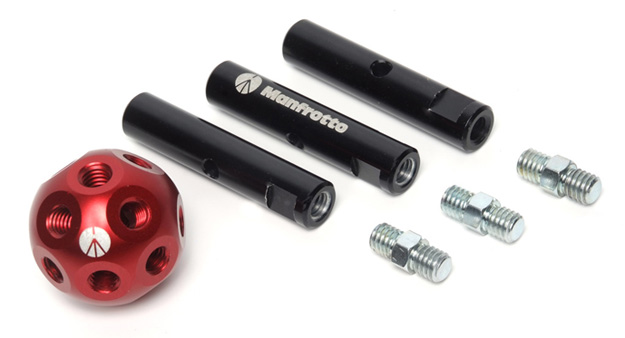 It perfectly fits the needs of videographers, photographers and hobbyists who want to simplify their equipment and travel as light as possible without giving up their attachments to all their hardware. DADO is a junction made of 18 threaded holes (3/8), 3 tubes with both female 3/8 threadings and male 5/8 attachments. It’s compatible with all the best selling items in the Manfrotto Lighting range. Dado is available in two kits: one with 3 tubes, 3 threaded pins and 1 sphere and the second with 6 tubes, 6 threaded pins and 1 sphere.