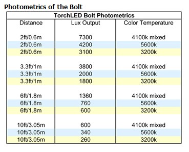 The TorchLED Bolt gives a genuine 200 watt light output (7300lux at 2ft, and 3800lux at 1m), with the brightness and throw (40 to 50 feet) of an actual Halogen light in LED form. For event videographers, DLSR video production and more, The TorchLED Bolt serves as not only an on-camera lighting solution but can be positioned on a light