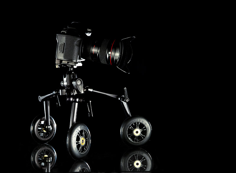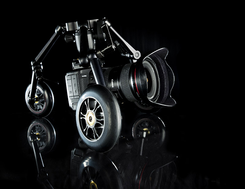 It can serve as a linear dolly, a curved dolly, an under-sling dolly, and can even convert into a variety of hand and shoulder support rigs. Not only that, but ZipShooter will fold compactly into virtually any gear bag.